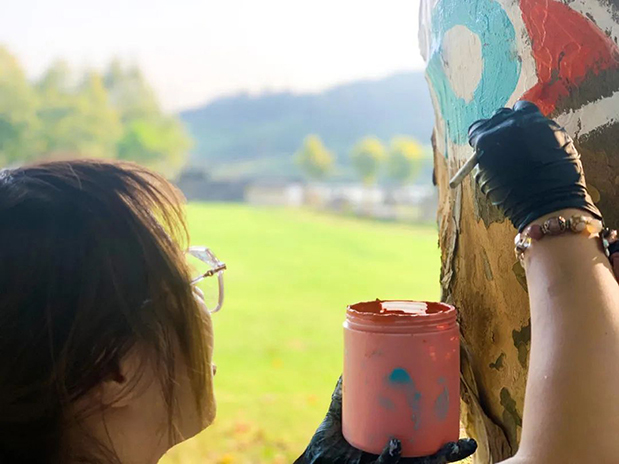 就這樣,愛涂妝的“愛”藝術家們與裸心谷的伙伴共同完成了一幅“大型”作品,