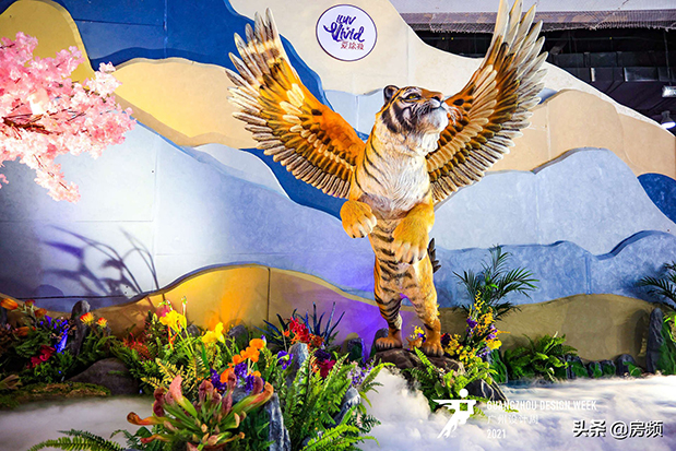 走近愛涂妝展廳,映入眼前的是帶有奇幻色彩有著雙翼的老虎,