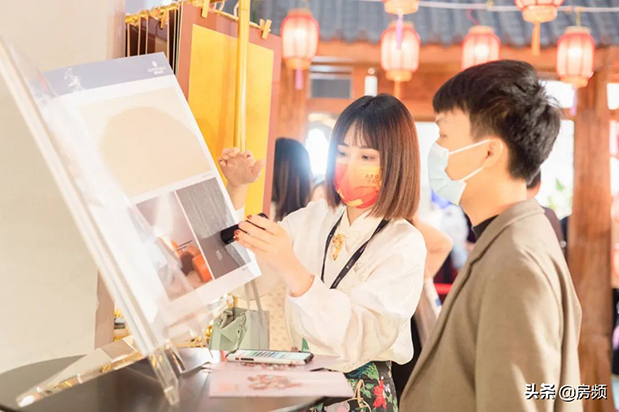 身著中國(guó)傳統(tǒng)服飾的美色工程師在展臺(tái)為觀眾講解