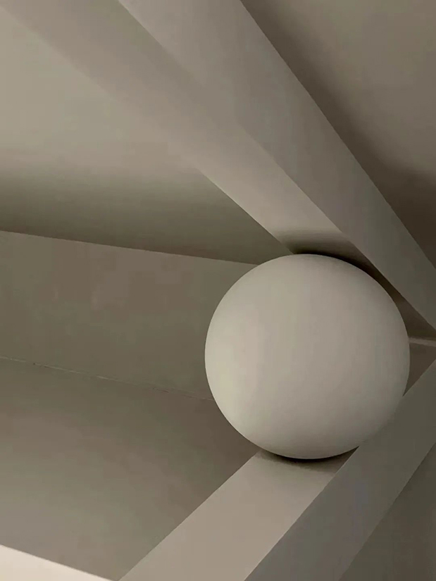 球形裝置屹在曲直之間,曲線與直線穿插組合,