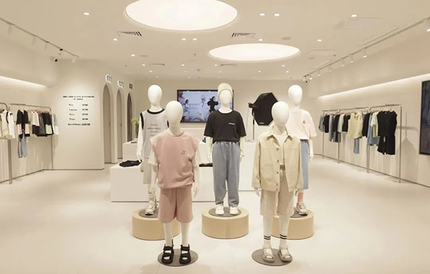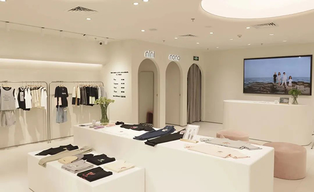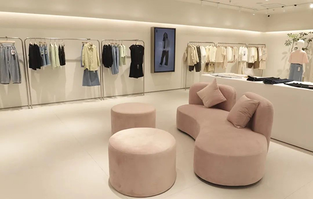 旗艦店所有墻面采用的愛涂妝砂巖定制色系,環保材質,看似白色其實是有