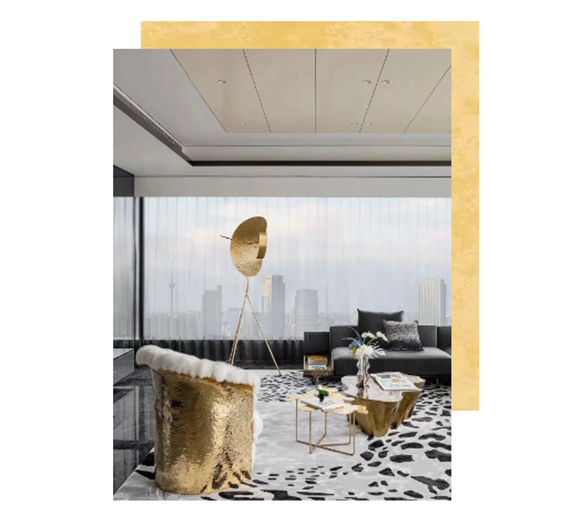 用金色“妝”點家居,當然也不能流于俗套。對 “金”色的色調和飽和度