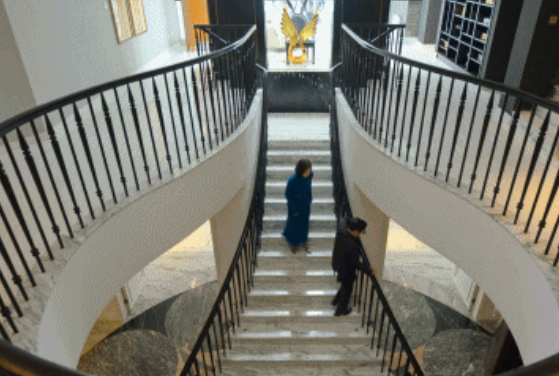 別墅中最令人有印象印象深刻的是,采用了直跑式的樓梯,整體形態(tài)呈天