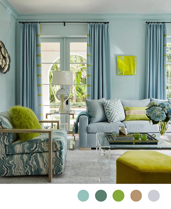 綠色與碧藍(lán)色相搭配,可以讓家居空間充滿自然氣息和舒心感。可以在碧