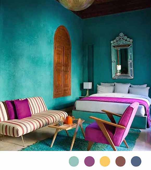 力的空間。可以嘗試在碧藍(lán)色的背景下,使用紫色的床單、窗簾或者燈罩