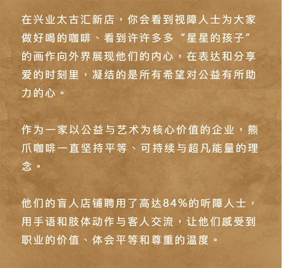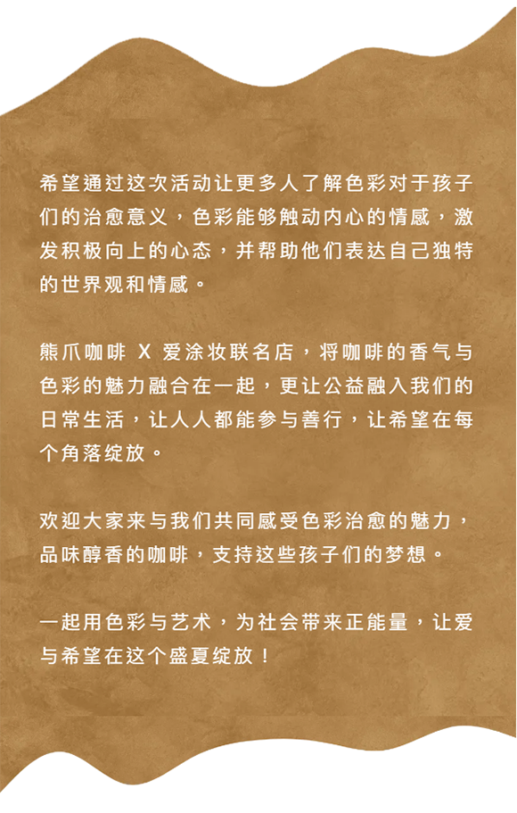 這次聯名店的開業,熊爪咖啡攜手愛涂妝,進一步引起社會對弱勢