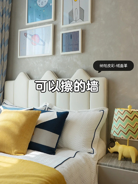??此前愛涂妝為客戶打造的寶寶房中,有采用納帕皮彩系列藝術涂料,就