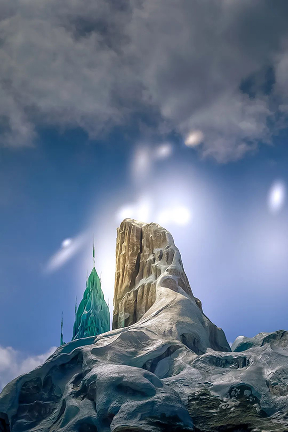 你可以從遠處看到這龐大的雪山,也可以從近處注意到迪士尼的很多小細