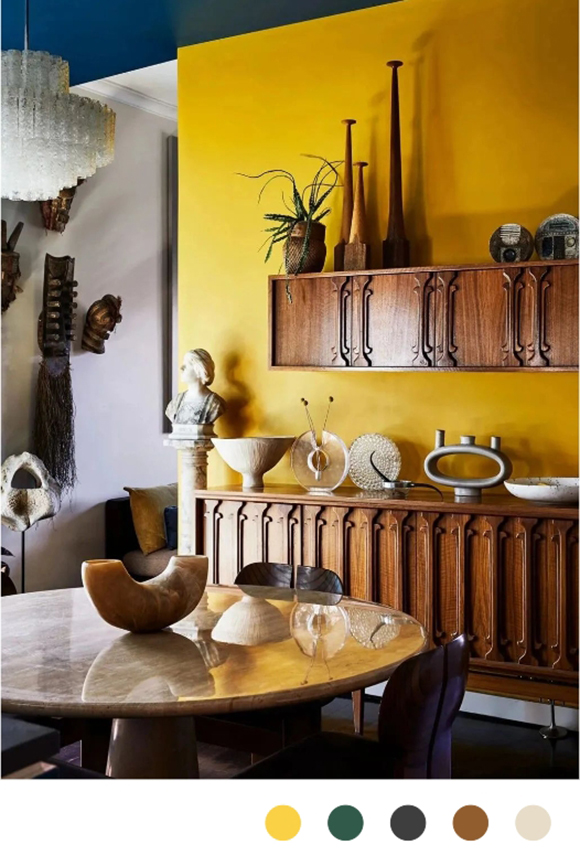 當用作暖灰色、深藍色、李子色或棕色的強調色時,它會將能量轉移到那